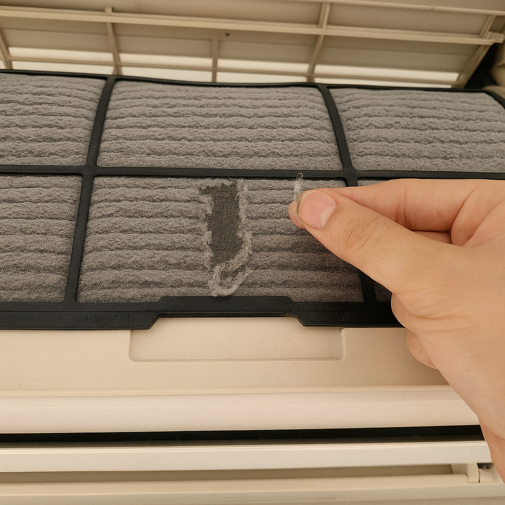 에어컨을 켰을 때 풍량이 약하거나, 소음이 커졌거나, 이상한 냄새가 느껴진다면 필터 청소 시점이 지났을 가능성이 높습니다.